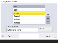 ניתן לשנות את השפה המוצגת בתצוגת מסך המגע ובמקלדת.