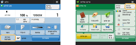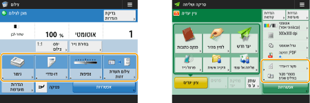 ניתן לשנות את לחצני ההגדרות המוצגים במסכי התכונות הבסיסיות (של צילום, פקס וסריקה). ניתן גם להציג מסך תכונות בסיסיות שונה המותאם אישית עבור כל אחד מהמשתמשים המחוברים.