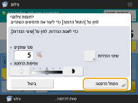 לחץ על <התחל הדפסה> כדי להדפיס את מספר העותקים שציינת. אם בחרת <כל הדפים> בשלב 5, יודפס מספר העותקים פחות אחד. אם בחרת <הדפים שצוינו> בשלב 5, יודפס מספר העותלקים הכולל.