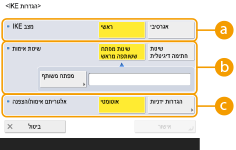 1 | לחץ על <הגדרות IKE>. | ||||||||||