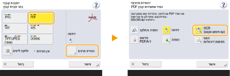 1 | בחר <PDF> לחץ על <הגדרת פרטים> <OCR (עם חיפוש טקסט)>.![]() |