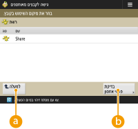 הצג לחצן החלפהלחץ על <למעלה> כדי לעבור לרמה העליונה מהנוכחית. כדי לעדכן את התכנים של המסך המוצג, לחץ על