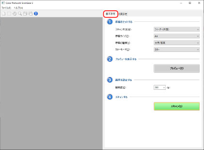 Color Network ScanGear 2のスキャン設定画面が表示されます。