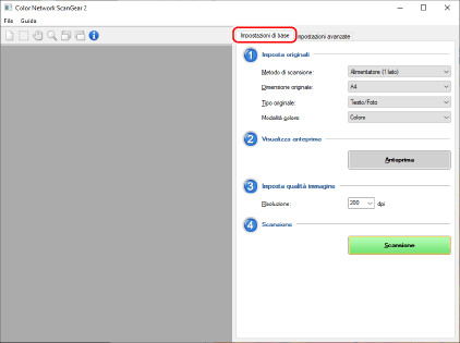 In questa sezione è spiegata la procedura per usare il driver al fine di effettuare scansioni con le Impostazioni di base.