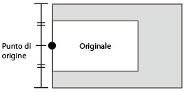 L'uso di questa funzione in scansione crea un margine bianco con una larghezza di circa 2,5 mm attorno all'originale.