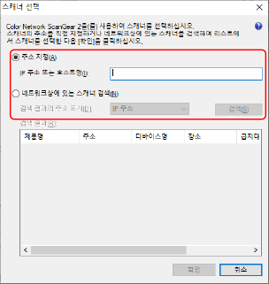 사용할 디바이스는 IP 주소 또는 호스트명을 통해 지정하거나 동일한 서브넷(동일한 네트워크 ID가 있는 네트워크)에서 검색한 디바이스 중에 선택할 수 있습니다.