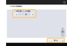 <アラーム音量>ファクスの送受信(受信したファクスのプリント含まず)が正常に終了した音(ポー)や、中止やエラーで終了した音(ピーポーピーポー)の音量を調整します。音を鳴らさない場合は、