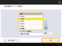 タッチパネルディスプレーの表示やキーボードの配列を、日本語以外の言語に切り替えることができます。ひんぱんに言語を切り替える場合は、表示言語切り替え用のボタンをタッチパネルディスプレーに表示しておくと便利です。