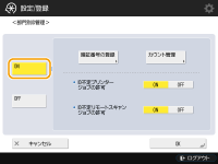 本機に登録したユーザーに部門IDが設定されているか確認してください。ローカルデバイスにユーザー情報を登録する 部門別ID管理はローカルデバイスに登録されたユーザーのみ有効です。 Administrator権限を持つユーザーでログインすると、システム管理者IDと暗証番号が自動的に付与され、部門IDとして管理されます。 コピーカードリーダーで部門別ID管理をしている場合は、カードに割り当てられた部門IDを使用します。このため、部門IDの登録はできません。 |