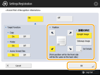 Press the arrow buttons to select the print position. To precisely adjust the position, press <Set Details> and specify the location.
