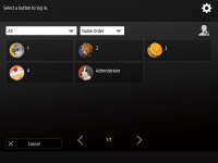 This method enables users to log in by pressing a user name displayed on the control panel, eliminating the task of entering a user name. This method is only available to users who are registered to the local device. To prevent unauthorized logins, it is also possible to set a PIN. User information can be registered manually or automatically (Configuring the User Login Methods and Authentication Devices).