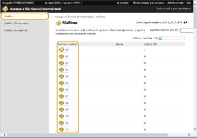 Nella pagina [Mailbox], fare clic sul numero della Mailbox desiderata.