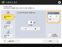 1 | <책 테두리 제거>을 누르고 <원고 크기>를 확인하십시오. ![]() <원고 크기>에 표시된 크기가 책의 크기와 다른 경우 <변경>을 눌러 크기를 선택합니다. 터치 패널 디스플레이에 표시된 원고 크기만 스캔할 수 있습니다. |
