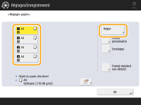 Formats de papier automatiquement détectablesSi <Personnalisé> s'affiche alors que du papier de format standard est chargé, appuyez sur <Format personnalisé>