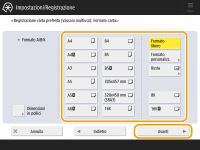 1 | Premere <Formato personalizz.>. ![]() Il formato della carta può essere specificato tramite <Formato libero>, che elimina la necessità di inserire le impostazioni relative al formato. Specificare <Formato libero> quando si carica carta dal formato sconosciuto da utilizzare per la copia o quando il formato della carta è già registrato nel driver della stampante. |