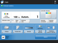 Premere visualizzato nella schermata <Home> e nella schermata Funzioni di base per personalizzare la schermata, ad esempio ridisponendo i pulsanti o creando un tasto di scelta rapida. Personalizzazione del pannello digitale![]() È possibile modificare le impostazioni relative alla visualizzazione della schermata, come ad esempio quale schermata appare subito dopo l'accensione della macchina e la visualizzazione di un messaggio relativo alla quantità residua di carta e toner. <Impostazioni visualizzazione> È possibile impostare la visualizzazione della schermata dopo che è trascorsa una certa quantità di tempo senza operazioni. <Funzione dopo ripristino automatico> |