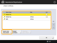 Selezionare il codice e il certificato da utilizzare per la comunicazione crittografata TLS e premere <Impost.come chiav.predef.>  <Sì>.