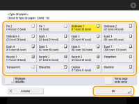 <OK>. Enregistrement du format et du type de papier fréquemment utilisé avec le plateau multifonctions