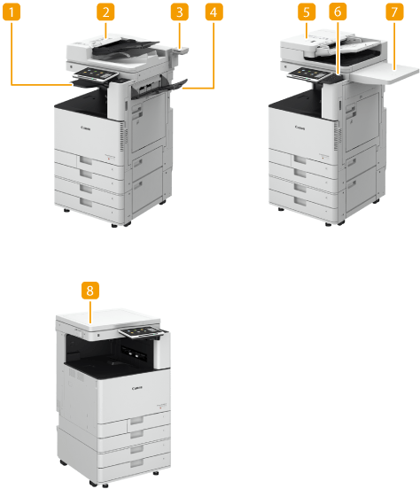 有关可以在本机安装的可选配件组合的信息,请与本地的授权佳能经销商联系。 根据本机上安装的可选设备配置情况,可能不会显示某些设置。 |