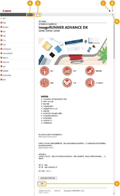 单击以在目录和检索画面之间切换。当显示目录时,每单击一次将会在隐藏和显示画面之间切换。当显示检索画面时,每单击一次将会在隐藏和显示画面之间切换。