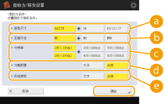 <纸张尺寸>正确设置纸张尺寸以保证接收方能够正常收取数据。请在确认待发送数据纸张的尺寸与接收方设备规格匹配后再指定此设置。 <A4/LTR>:以A4/LTR尺寸发送。 <A4/LTR> + <B4>:以A4/LTR尺寸或B4尺寸发送。 <A4/LTR> + <A3/11×17>:以A4/LTR尺寸或A3/11” x 17”尺寸发送。 <A4/LTR> + <B4> + <A3/11×17>:以A4/LTR尺寸、B4尺寸或A3/11” x 17”尺寸发送。 ![]() 当扫描数据的纸张尺寸小于<纸张尺寸>中设置的尺寸时,将以<纸张尺寸>中设定的带空白边缘的最小纸张尺寸发送数据。 当扫描数据的纸张尺寸大于<纸张尺寸>中设置的尺寸时,将以<纸张尺寸>中设定的最大纸张尺寸发送数据。 根据接收方机器规格设置接收方条件。若待发送数据的纸张尺寸大于接收方设备可以使用的纸张尺寸,图像可能会被裁剪或截除。 <压缩方法>选择压缩方法。MMR的压缩率最高,之后是MR,然后是MH。压缩率越高,发送时间越短。 <分辨率>选择更高的值以增加分辨率,提高图像质量。然而,分辨率越高,发送时间越长。 <分割数据>如果发送的数据量超过最大限制(<最大发送数据量>),请选择是否要按大小或按页分割数据。 如果选择<打开>,则数据将分割为较小的大小,不会超过该限制,并且分多个部分进行发送。接收方的设备必须能够合并接收的数据。 在配置互联网传真设置的步骤1中,如果在<通过服务器发送> ( )中选择<关闭>,发送的数据即使超过最大限制,也不会分割。 <彩色接收>(仅限C7700 系列 / C5700 系列)使您能够在接收方机器支持彩色的情况下进行彩色发送。按<打开> <下一步>,然后设置纸张尺寸和分辨率。![]() 根据接收机器规格设置接收方条件。如果设置接收机器不支持的条件,可能会出现发送错误。 |