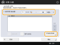 3 | 在<接收方>中选择设备信息接收方(客户端),然后按<确定>。 按<显示主机名>显示<接收方>中显示的多功能打印机的主机名。 |