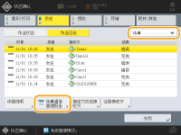 如果已打印的列表中的“结果”列出现“NG”,查看以“#”开头的三位数字,查找原因和解决方案。 如果 (设置/注册) <管理设置> <设备管理> <限制访问其他用户的作业>设置为<打开>,不属于登录用户的作业将显示为“***”,并且无法执行。如果以管理员权限登录,会显示所有用户的作业。 |
