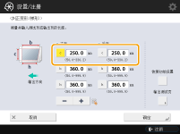 2 | 在<纠正变形(平行四边形)>屏幕上,对于正面及反面为<c>输入“250.0”。 |
