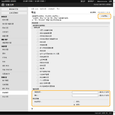 从[安全等级]中选择安全等级 单击[开始导出]