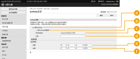 如果使用管理员特权登录,也可以从AirPrint页面更改AirPrint设置。