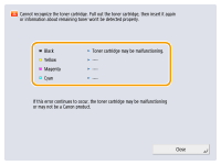 重新启动本机。如果重新启动本机后仍然显示信息,请记录下信息并与经销商或服务代表联系。
