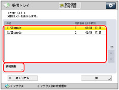 Iファクスの分割データの受信は、分割データを受信してから24時間を経過するとタイムアウトとなり受信できなくなります。タイムアウトの設定は、 「受信トレイを設定する」を参照してください。 暗証番号を求められた場合は、[受信トレイ設定]の[システムボックス暗証番号]で登録した番号を入力してください。 (→受信トレイを設定する) |