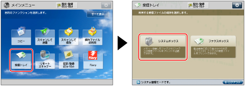 (メインメニュー)→[受信トレイ]→[システムボックス]を押す