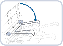 長尺用トレイ・Dを開くときは、延長トレイが周りの人や物に当たらないように注意してください。 |