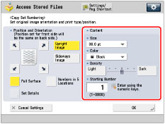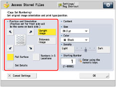 If you set <Number Option> to 'On' in [Copy Set Numbering Option Settings], you can set the copy set number size to [10.5 pt], [12.0 pt], or [14.0 pt]. (See "Copy Set Numbering Options.") |