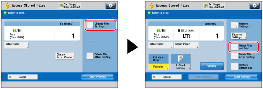 Press [Change Print Settings] → [Merge Files and Print].