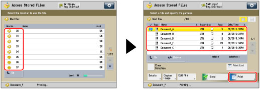 Select the desired Mail Box → select the desired file → press [Print].