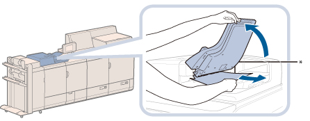 Do not drop clips or other objects into the gap in the original supply tray. Do not add or remove originals while they are being scanned. When scanning is complete, remove the originals from the original output area to avoid paper jams. (When you use the Duplex Color Image Reader Unit-M, the Original Output Indicator blinks for a certain time when scanning is complete.) ![]() * Original Output Area Do not place items in the original output area, as doing so may cause damage to your originals. |