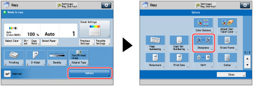 You can adjust the sharpness to copy text and lines with a sharper contrast. You can also reduce the sharpness for the half-tone dots of printed photos, etc. to copy with a softer image.