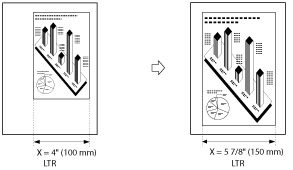 The machine converts the specified sizes into a copy (zoom) ratio (%) using the following formula. (The result is rounded to the closest integer.) Copy (zoom) ratio (%) = (copy (data output) size/original size) x 100 |