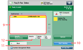 12 | [Details] Press to check or change the destination information selected from the destination list. |