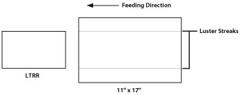 When paper with a longer width is used after copying or printing 100 or more sheets of paper with a shorter width (for example, when you use 11" x 17" paper after LTRR paper), luster streak may appear on both edges in the feeding direction. In addition, patches of uneven gloss may appear in the high density areas of the printed heavy paper or coated paper. In this case, the streaks and patches of uneven gloss may be reduced by refreshing the fixing roller and cleaning its surface.