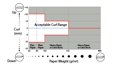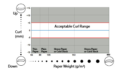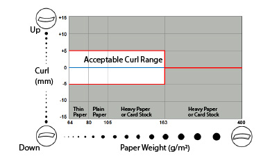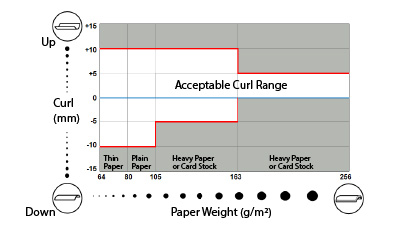 We recommend using paper which curls up or down 1/4" (5 mm) or less regardless of the paper thickness.