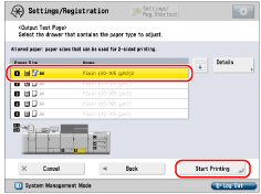 Select the paper source that contains the paper type to adjust → press [Start Printing].