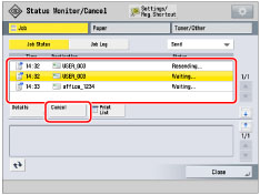 You cannot select multiple jobs and cancel them all at once. Select and cancel one job at a time. |