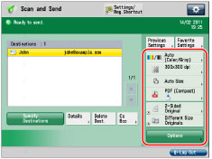 The send settings for the last send job may be retained. To cancel the settings, press (Reset).The specified destinations are not retained. |