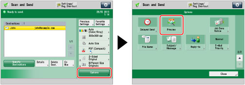 Specify the destination → press [Options] → [Preview].