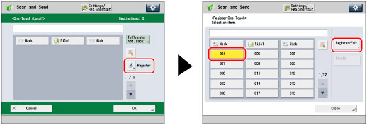 Press [Register]→ select a one-touch button to store or change → press [Register/Edit].