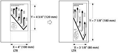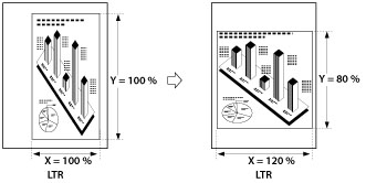 If you set the zoom ratio in the XY Ratio mode, the image of the original may be rotated before being printed. The machine calculates whether or not to do this based on the original size and the specified zoom ratio. |