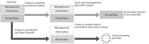 "Optional Products Required for Each Function."The machine separates and stores the job data when copying, sending, receiving, and printing into management information and actual data. The management information is automatically erased when the job is complete, but the actual data is stored in the hard disk.